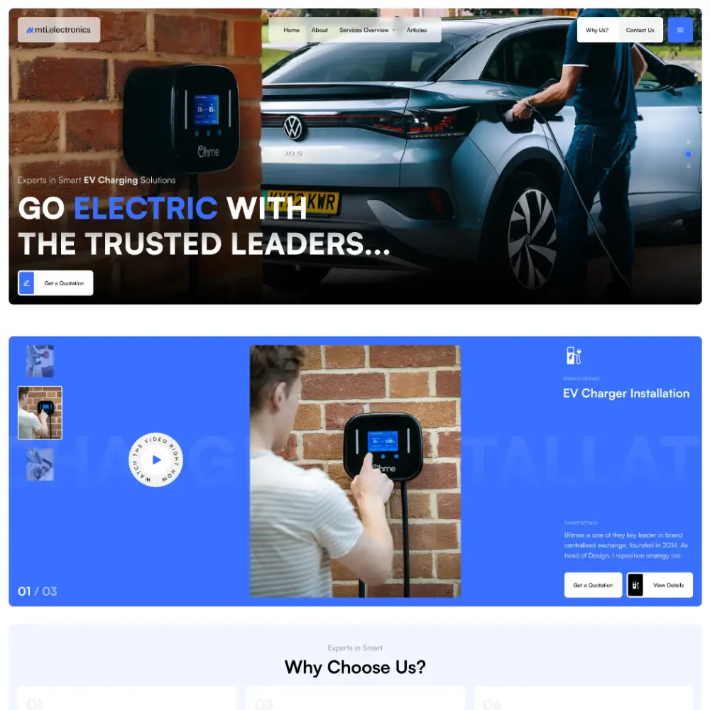 A complete agency portfolio platform built for MTI Electronics to showcase their services, blog content, and product offerings.